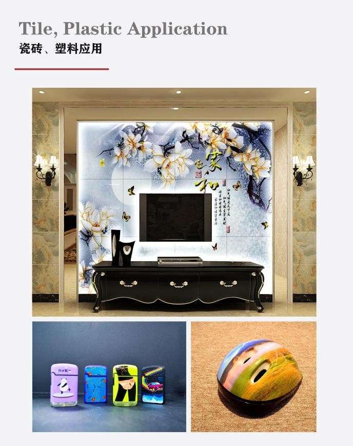 門板、瓷磚、玻璃、UV 板材、天花吊頂、竹木纖維板、石膏板、波浪板等材料都可以用UV打印機,適用于全屋定制、集成墻板、藝術玻璃、家裝布藝等行業(yè)。