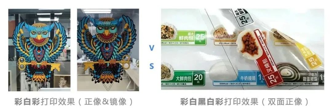 ②用彩白黑打印模式,達到遮光效果,在面板、薄膜開關行業應用較多。