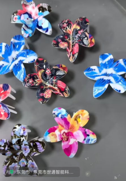 材質突破:UV打印技術實現多種材質覆蓋,發夾常用的亞克力、金屬、塑料等材料都能完美適配。