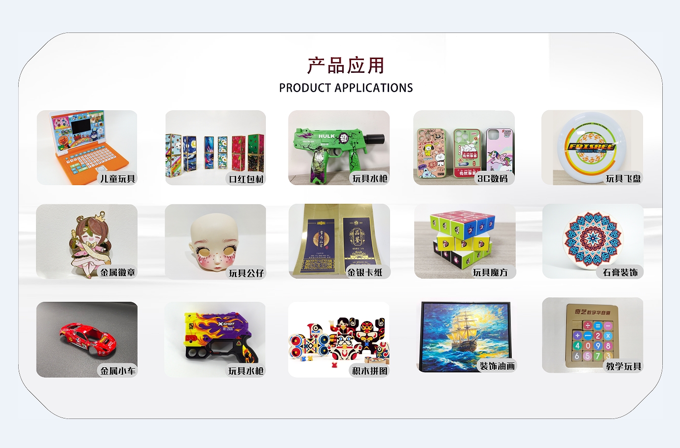 全線墨水通過EN71-3歐洲玩具安全標準色彩鮮艷且附著力強,耐兒童頻繁觸摸。打印成品可通過人工汗液、唾液測試,與傳統(tǒng)印刷相比,uv平板打印更加安全環(huán)保,對于兒童玩具應用行業(yè)也更具優(yōu)勢,安全、無毒、環(huán)保,生產(chǎn)方式靈活多變,多種UV打印工藝,為玩具廠商創(chuàng)造更高的附加值。