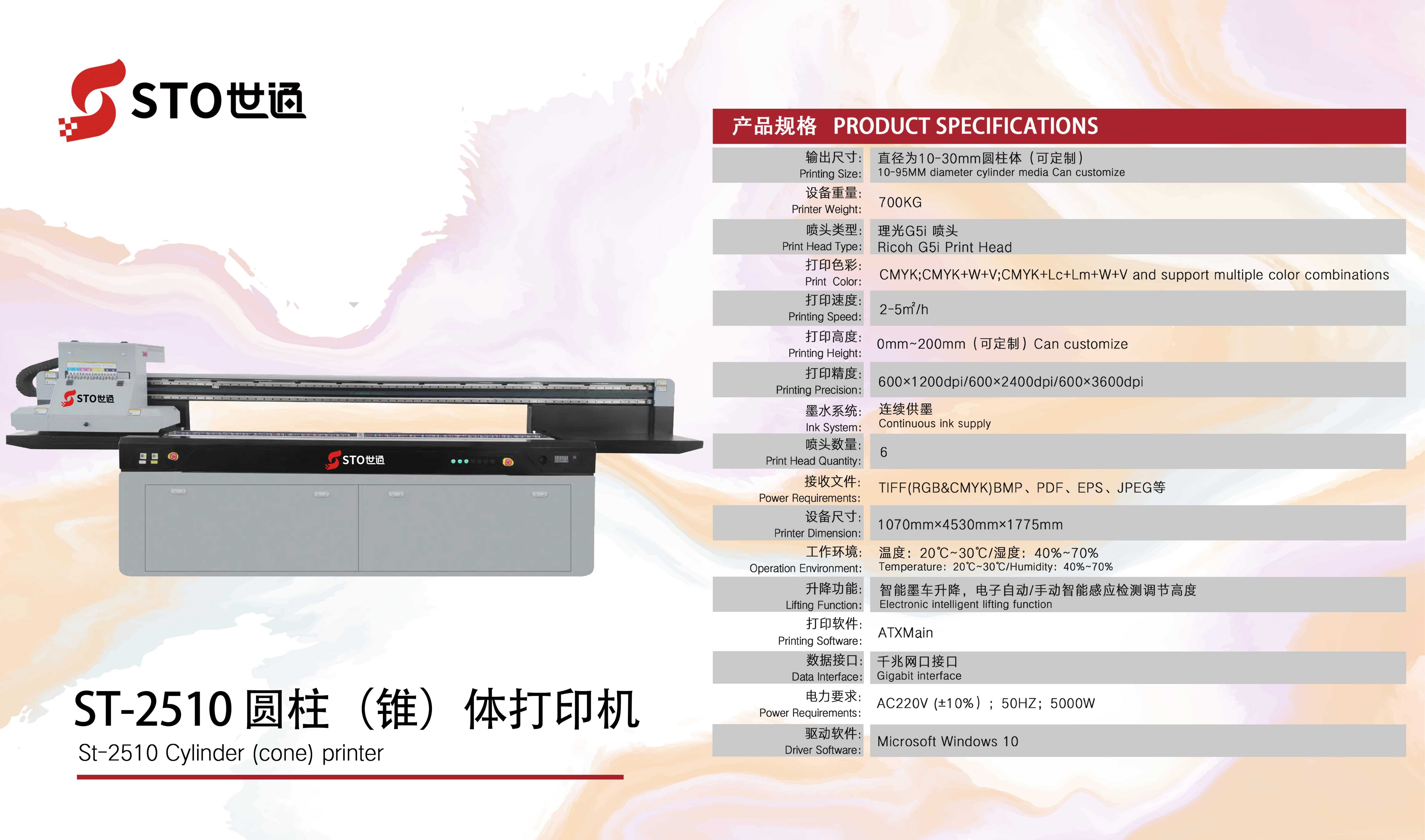 高速圓柱體打印機是一種通過噴墨原理和UV打印相結合的一種新型打印工藝。針對目前圓柱體、不規圓錐體的打印需求,世通研發升級了針對圓柱體圓錐體的高速UV打印機,為圓形的曲面承印物旋轉進行噴繪,可以打印多種常見的各種圓柱形物體和不規則錐形容器,如化妝品口紅管、各類化妝品瓶體、各類包裝、不銹鋼保溫杯、塑料瓶、筆筒、酒瓶等圓柱體產品。